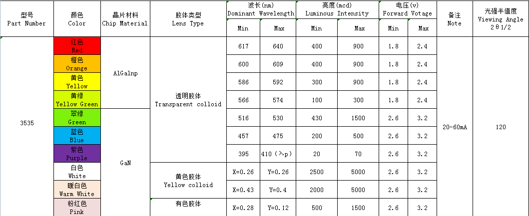 3535(單、雙、全彩、ICRGB、紫外、發(fā)射接收)全系列