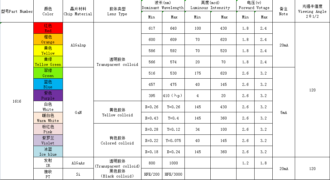 1616(單、雙、全彩、ICRGB、發(fā)射接收)全系列