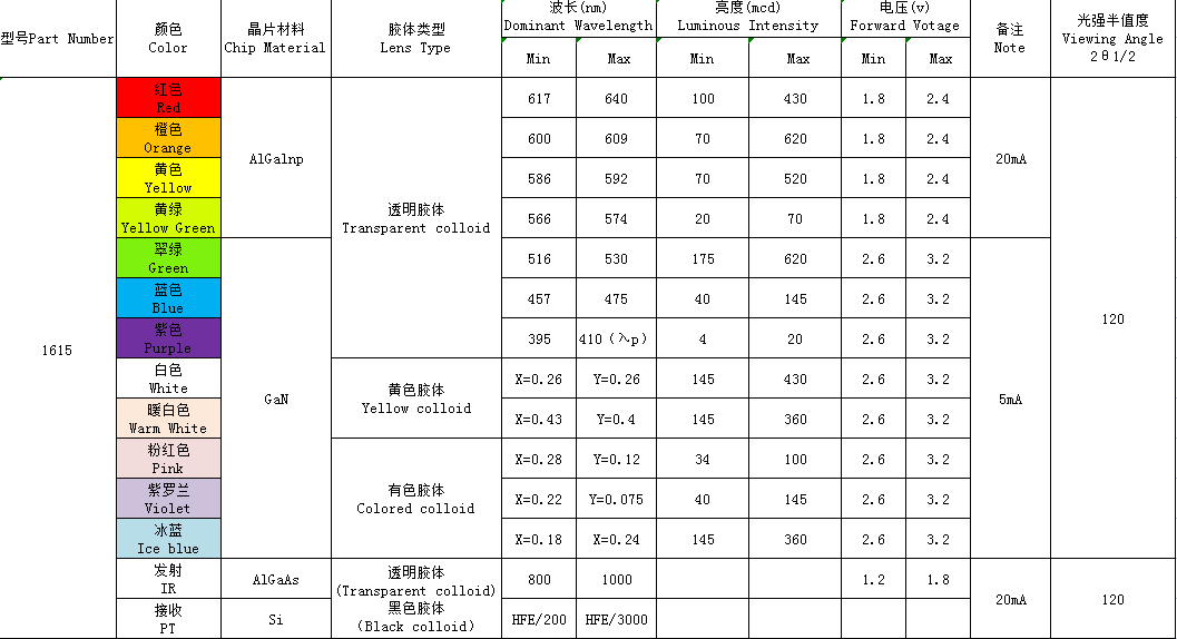 1615(單、雙、全彩、ICRGB、發(fā)發(fā)射接收)全系列
